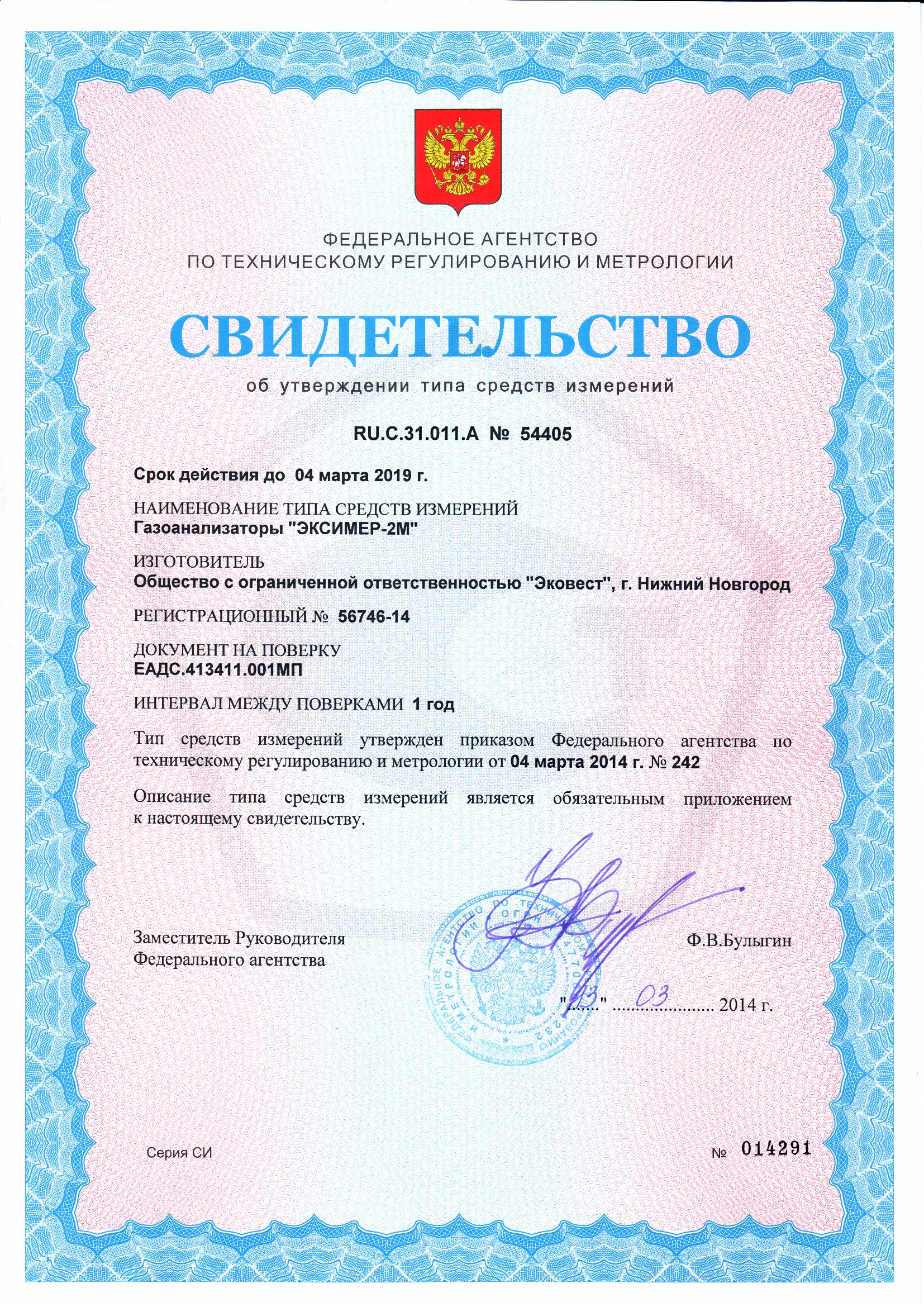 Свидетельство об утверждении типа средств измерений RU.C.31.011.A №54405