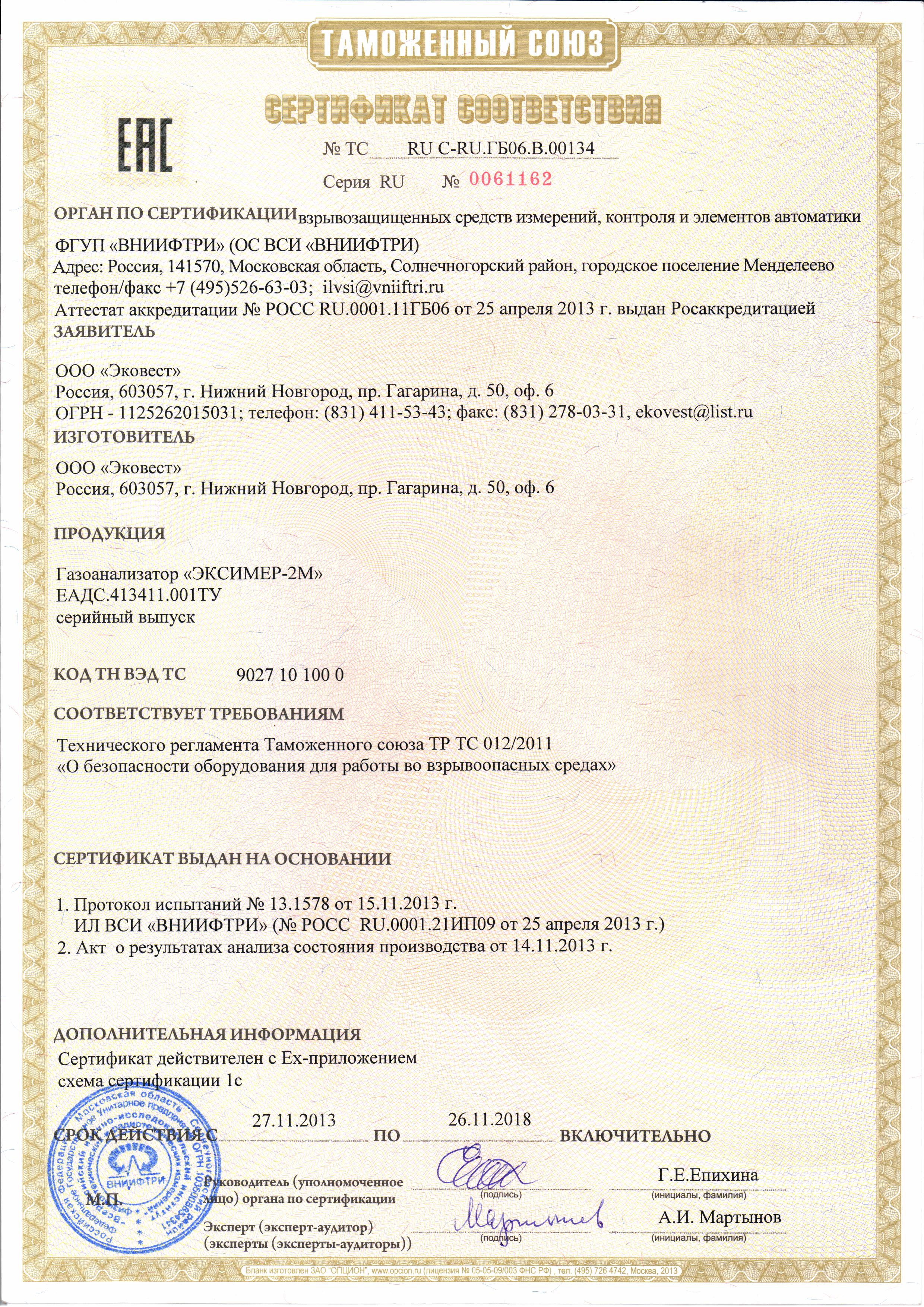 Сертификат соответствия № RU CRU. ГБ06.В.00134